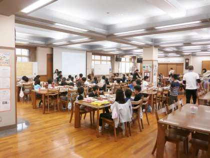 今日は4−1と2−1がランチルームで給食を食べました。2回目ということもあり,一昨日よりも会話が弾んでいる様子でした。プリプリ中華いためのおかわりに大行列ができていました。