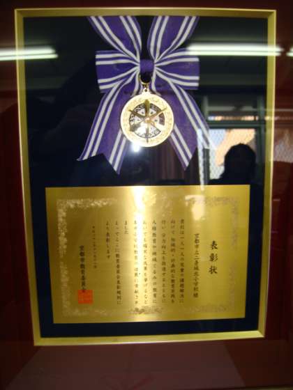 新聞でもご存知かもしれませんが,本日,アスニーで教育功労賞として二条城北小学校が表彰されました。