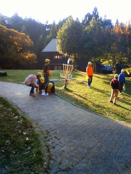 フライデングデスクゴルフをしながら,山の家の広い敷地内を走り回っています。そろそろおなかもすいてきたようですが,今日も入浴の後に,6時から夕食です。夕食もたっぷり食べられるといいですね。夕食の後は,天体観測と家族への手紙の活動があります。