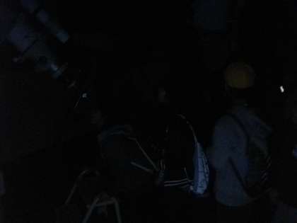 雲一つなく、絶好の観測条件なのですが、月が少し明るいようです。デネブやアルタイルは肉眼できれいに見えます。天体望遠鏡で、星雲や月をみることができました。(写真は天体望遠鏡をのぞいている様子です…)
