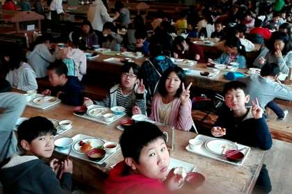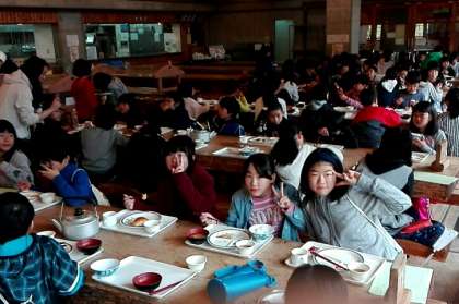 食堂で朝食をとっています。