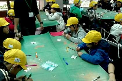 朝に雨が降っていたので,午前中の最初の活動はクラフトに取り組んでいます。