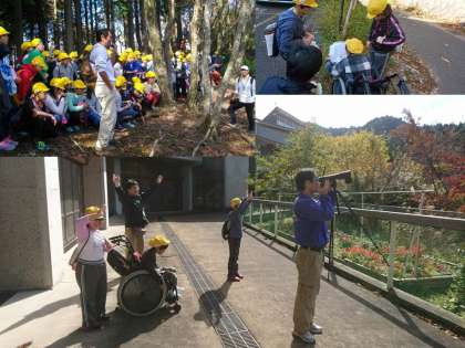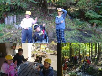 山の尾根から,「山の家」にむけて「ヤッホー!」と声をそろえて言ったところ,見事に声が届きました。次に「山の家」から,登山隊に声をかけると,これも見事に声が届き,みんなびっくりしていました。
