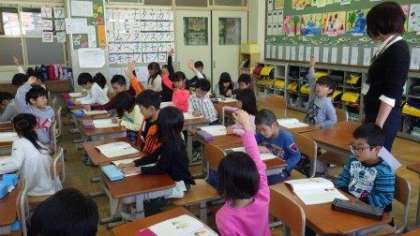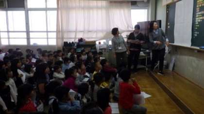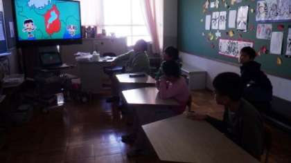 2年生は学習発表会についての話し合いをしています。わかたけ学級3年生4年生6年生は映像教材を使って,社会の学習をしています。1年生は国語の学習をしています。