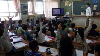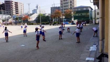 6年生は体育でなわとびの学習をしています。4年生は音楽の鑑賞をしています。1年生は国語の学習をしています。