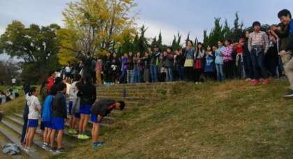 上京支部「大文字駅伝」大会支部予選会が鴨川公園で開催されました。二条城北小学校は懸命にタスキをつないで,4位に入賞しました。最後まであきらめずに走りきる姿は,どのチームもすばらしいものでした。本戦出場は逃しましたが,これからも走ることを続けてほしいと思います。応援に駆けつけてくださった皆様,ありがとうございました。