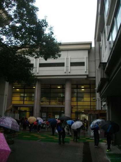 しとしとと雨が降っています。子どもたちが登校してきました。
