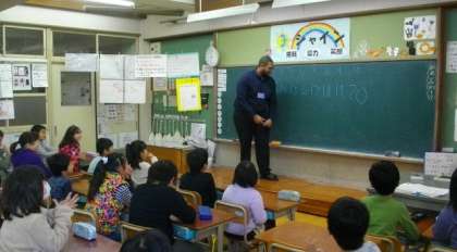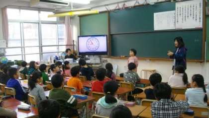 朝の会で,スピーチをしています。また,ALTの先生に,英語の学習をすすめていただきました。はじめに1から20までの数字の数え方を,クイズ形式で学んでいます。とても楽しそうです。