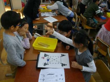 6年生は家庭科で「冬のくらし」について話し合っています。3年生は,「ユンノリ」体験をしています。