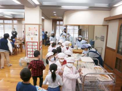 今週は,6−2と1−2がランチルームでなかよし給食を行います。