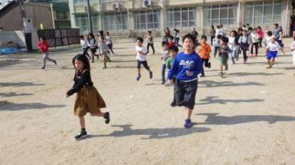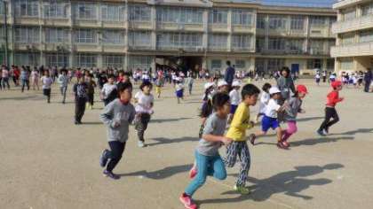 昨日は雨で2・4・6年生は業間マラソンができませんでした。今日は,1・3・5年生が業間マラソンを行っています。