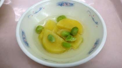 今日は,スチームコンベクションオーブンで作りました。さつまいものやさしい甘さと,えだ豆のいろどりを楽しんでほしいと思います。