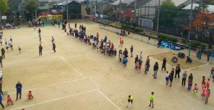 好天に恵まれ,ドッジボール大会が二条城北小学校運動場で開催されました。300人近い児童があつまり,熱戦が繰り広げられています。役員の方々は,朝7時頃から準備をしていただいていました。企画・ご準備等,ありがとうございます。