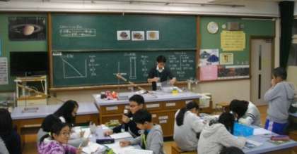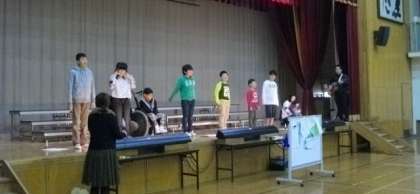 わかたけ学級は,体育館で,歌とハンドベルの演奏の練習をしています。6年生は理科室で実験をしながら「土地のつくり」について学習を進めています。4年生は,社会科で郷土の歴史について調べています。