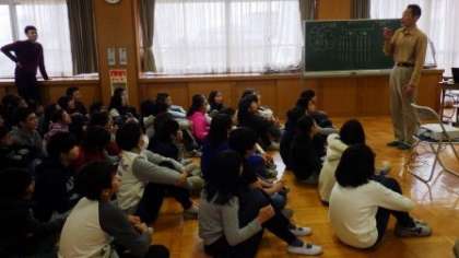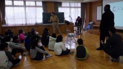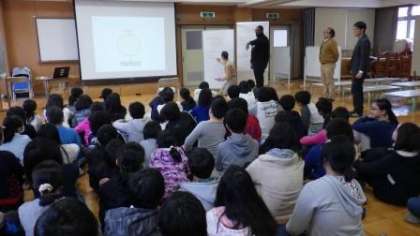 二条中の英語の先生にきていただき,中学校の英語の授業体験をしました。フォニックスを使って発音の学習をしたり,楽しいゲームをしたりしました。