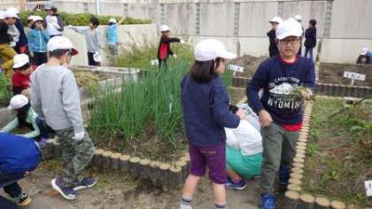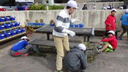 4年生は,学校北側の学習園や野外炊事場周辺の草ひきをしています。