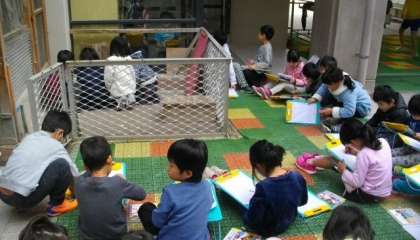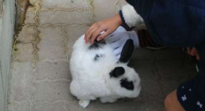 1年生がうさぎの観察をしています。