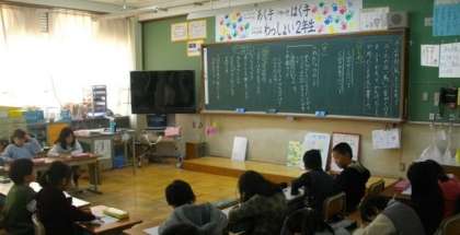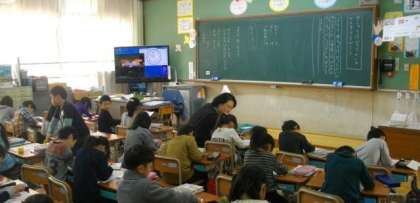 1,2年生は,昨日行った学習発表会のビデオや写真をみたあと,感想を書きまとめています。