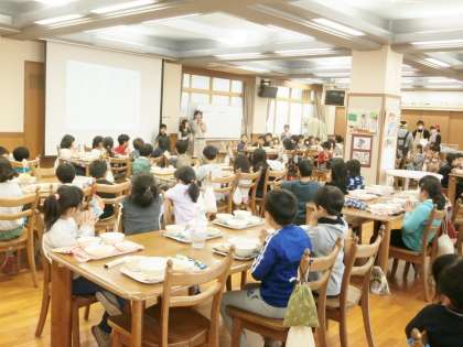 「ゆばあんかけどんぶりのあんかけがあまくて,ゆばがごはんと合っていておいしかったです。どうしてそう思ったかというと,ゆばがぷりぷりだからです。また作ってください。」(2年児童)