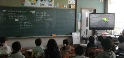 3年生は理科で,太陽の動きと影のできかたについて,ビデオをみたり実験をしたりしながら学習を進めています。2年生は,算数科で長方形の性質を調べるために折り紙をおっています。