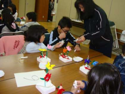 今回は,「工作教室〜モールを使って」です。出水住民福祉連合協議会の山本会長をお迎えして,モールを使ってお花や動物などを作りました。