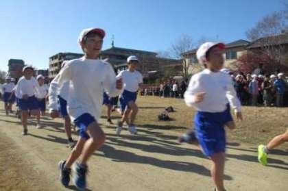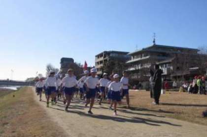気温は寒いですが,快晴の中,マラソン大会を行いました。はじめは中学年が走りました。たくさんの方に応援していただき,ありがとうございました。