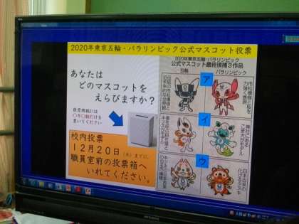 マスコット投票をしています。どのマスコットも特長があり,かわいらしいので,子どもたちの意見はわかれています。