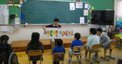 「はらぺこあおむし」の絵本は,人気があります。子どもたちも楽しみながら聞いていました。