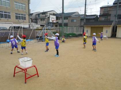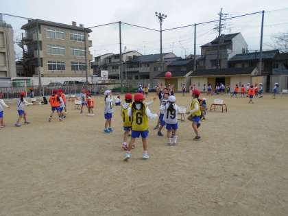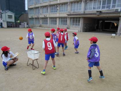 「パスゲーム」の学習の最後の時間に,学年で交流戦を行いました。いつもとちがう相手と新鮮な気持ちで,元気に活動する様子が見られました。