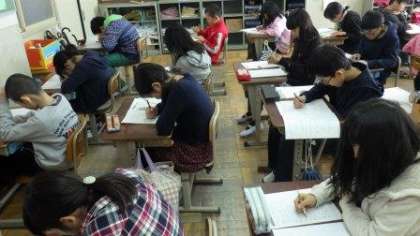 今日は,5・6年生がジョイントプログラムテストに取り組んでいます。