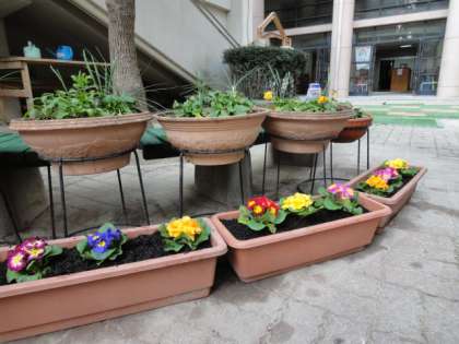 卒業式や入学式の式場に飾る花をプランターに植えました。何回か苗植えをしてきたので,みんな手際よく植えることができました。彩りもあざやかに春を待っています。