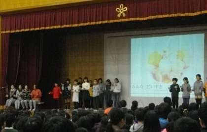 給食委員会から,給食週間に向けての取組発表がありました。正しい食器の返し方やトレイの返し方をクイズにしたり,クイズラリーの開催予定を発表したり,楽しい発表がつづきます。