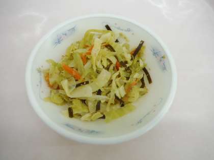 ごま酢煮のキャベツなどをスチームコンベクションオーブンで蒸してから炒め煮ました。野菜の甘みやうまみがあり,大変おいしく仕上がりました。