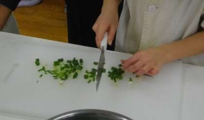 包丁を使って調理しています。