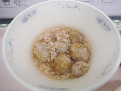 揚げ里芋のあんかけは,さっと煮て味付けをした里芋に米粉をつけて,油であげました。かつおぶしの風味がきいた鶏ひき肉入りのあんをかけました。