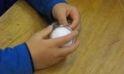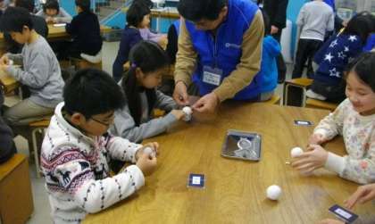 工房体験学習では,先端技術の原理や仕組みを実験や体験で学んでいきます。今日は,発表スチロールの仕組みについて学習しました。球形のスチロールを作ったり,身の回りにあるスチロール製品を見つけたりするなど,新しい発見がたくさんあり,楽しく学習を進めることができました。