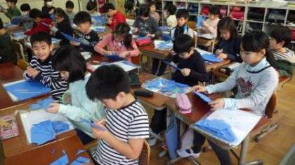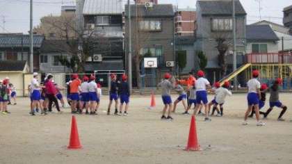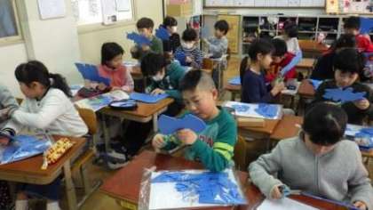 6年生は体育でつなひきの学習をしています。3年生は図画工作でスチレン版画を制作しています。