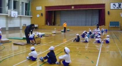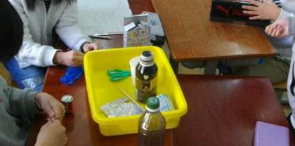 3年生は,理科で電気を通すものについて調べています。1年生は体育館で体育をしています。