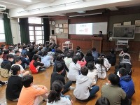 3時間目は4年生がお話会をしています。4年草の芽学級の子どもたちが「学習の中から」というテーマで自分の聞こえについて思ったことを話しています。