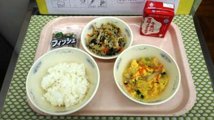 「こうやどうふのたまごとじがふわふわでおいしかったです。」(1年児童)