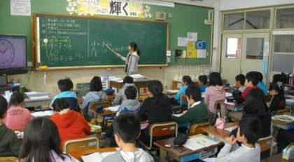 5年生は外国語活動に取り組んでいます。4年生は算数の「集団解決」の場面で意見交換をしています。