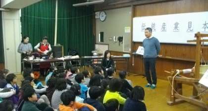 学校運営協議会の総合的な学習部の方にお世話になり,4年生を対象に「伝統産業見本市」を開催していただきました。