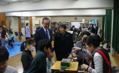 また,今年はたくさんの保護者の方々にもご参観いただきました。さらに,林建志上京区長が,取組の様子や,子どもたちの様子を見にきていただきました。