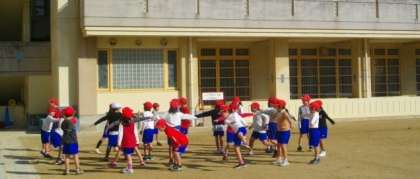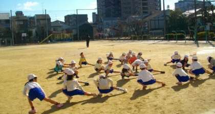 1年生が体育で準備運動をしています。