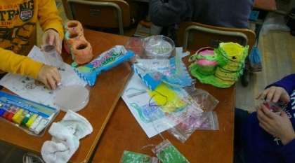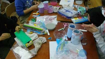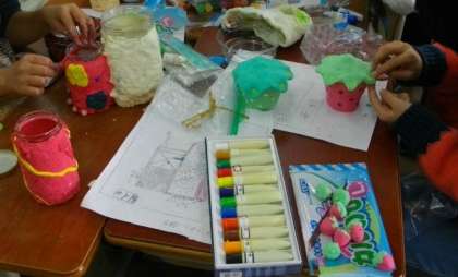 3年生は図画工作科で「ハッピー小物入れ」を作っています。