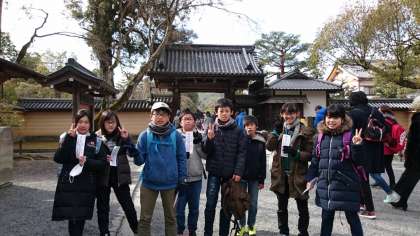 午後の金閣寺での様子です。いくつかのグループがバスで出会い,一緒に到着しました。