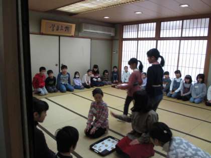 土曜学習「茶道入門」で,茶道を体験しています。3月3日はひなまつり茶会を予定しています。