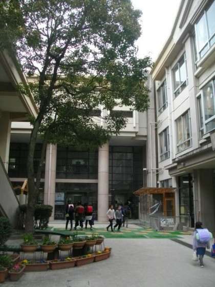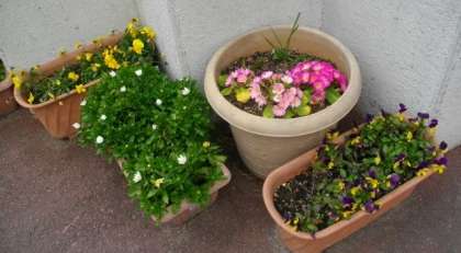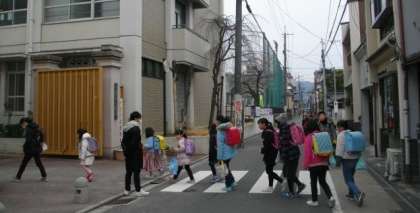 子どもたちが登校してきました。校門前の花も少しずつ開いてきました。