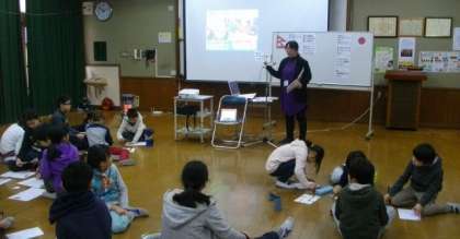 2時間目と4時間目に,教頭先生が4年生で人権についての学習を進めました。ネパール出身のレノカさんが日本で生活したことを通して,日本とネパールの違いや自分の中にある異文化について発見するお話です。子どもたちは,自分で考えたりグループで話し合ったりしながら,自分と友達との考え方の違いに気がついたり,レノカさんの気持ちを知って驚いたり喜んだりしていました。
