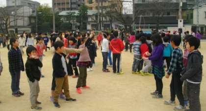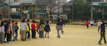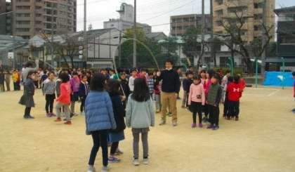 大縄跳びにチャレンジする子どもたちがたくさんいます。